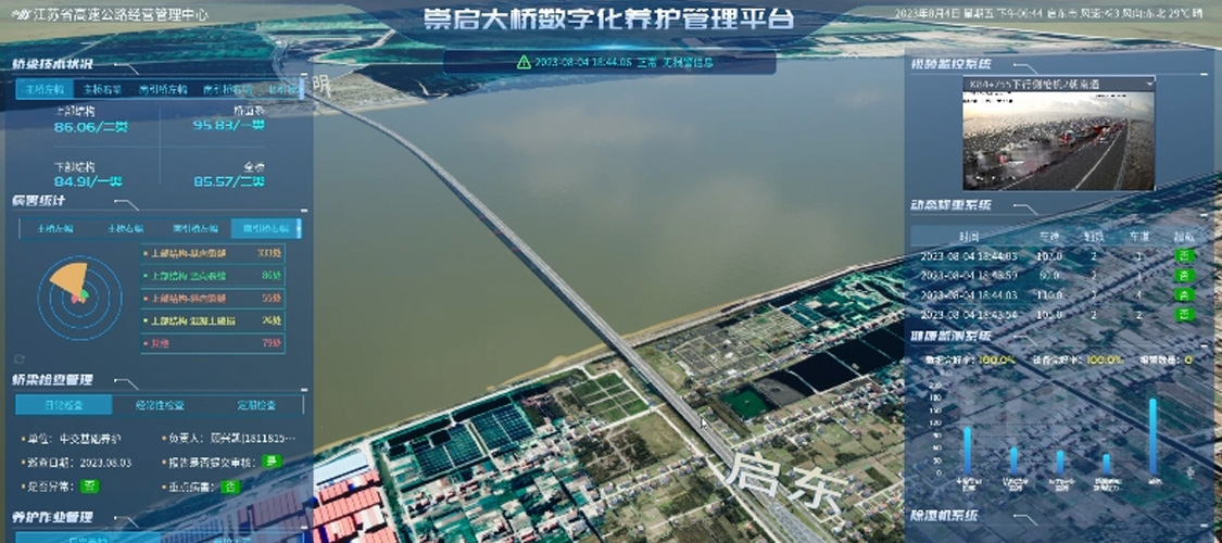 遵循“特橋特養(yǎng)”理念,深度挖掘崇啟跨江大橋結(jié)構(gòu)特點(diǎn)及運(yùn)營(yíng)期檢監(jiān)測(cè)、工程養(yǎng)護(hù)等數(shù)據(jù),以數(shù)據(jù)融合算法模型為基礎(chǔ),“BIM+”可視化模型為平臺(tái),構(gòu)建了基于標(biāo)準(zhǔn)化管養(yǎng)數(shù)據(jù)的信息化模型,集成現(xiàn)有檢監(jiān)測(cè)及營(yíng)運(yùn)相關(guān)系統(tǒng),利用BIM多層次建模技術(shù),實(shí)現(xiàn)多系統(tǒng)集成的數(shù)據(jù)可視化管理,打造了橋梁“智慧空間”。